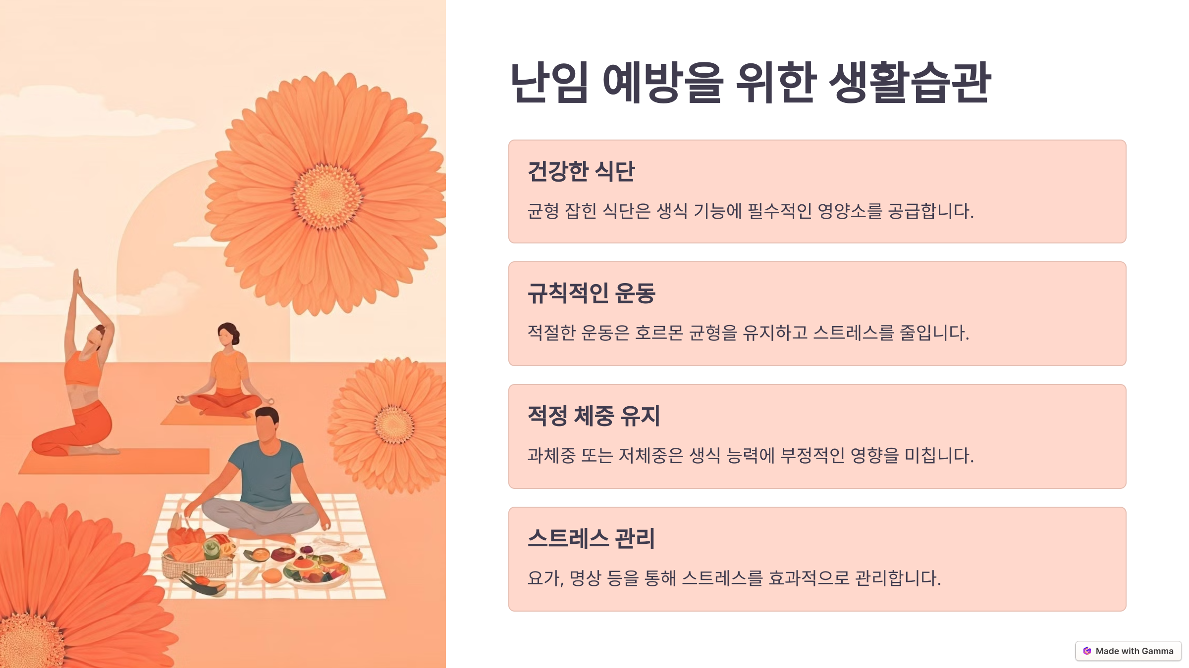 건강한 생활습관을 유지하면 난임을 예방할 수 있어요. 균형 잡힌 식사를 하고, 스트레스를 줄이며, 적절한 운동을 하는 것이 중요해요.
