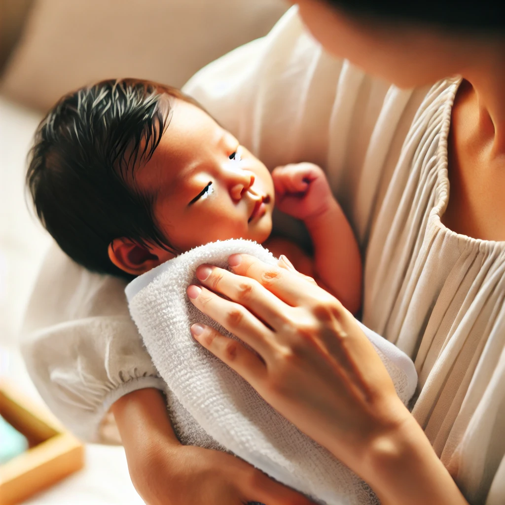 아기의 얼굴은 신체의 다른 부위와 분리하여 따로 닦아주는 것이 좋습니다. 민감한 부위인 만큼 얼굴은 물을 적신 수건으로 부드럽게 닦아 아기의 편안함을 높입니다.