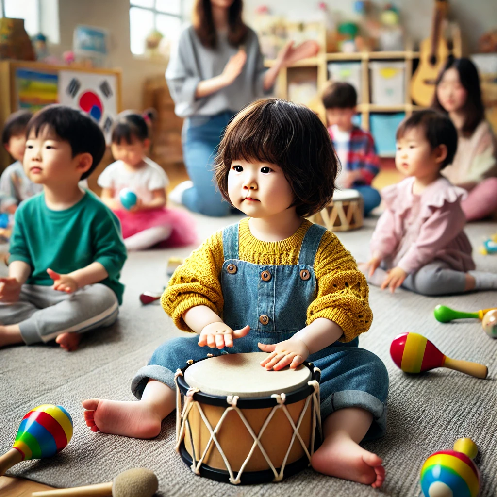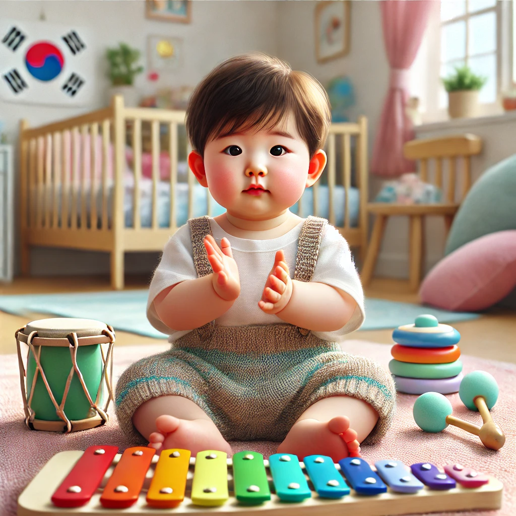 이 시기의 아기들은 리듬감 있는 음악에 반응하며, 간단한 악기를 흔들거나 손뼉을 치는 활동을 통해 음악과 상호작용합니다. 리드미컬한 동요와 밝은 클래식 곡이 아기의 감각 발달과 운동 발달을 자극합니다.