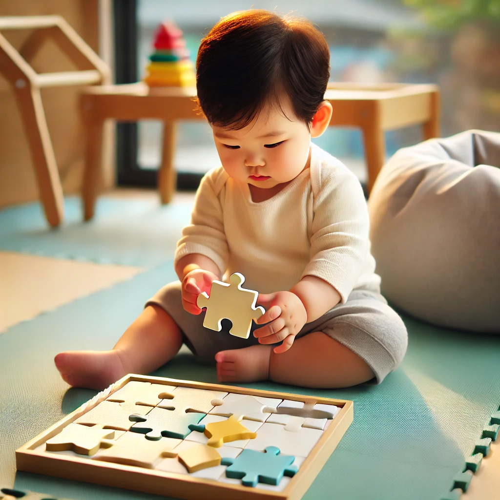 퍼즐을 맞추며 아기는 모양과 공간을 인식하고 논리적 사고를 키울 수 있습니다. 퍼즐을 통해 아기는 손과 눈의 협응 능력을 기르고, 성취감을 경험하면서 문제 해결 능력을 배웁니다.