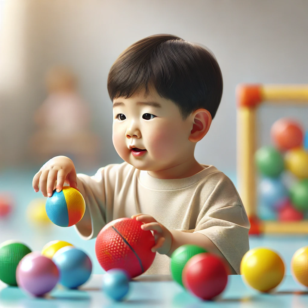 다양한 색상의 공을 보여주며 색깔 이름을 알려주거나, 숫자 순서를 맞추는 놀이를 통해 인지 발달을 촉진할 수 있습니다. 놀이를 통해 아기는 숫자와 색깔 개념을 자연스럽게 배우며, 이를 통해 두뇌의 논리적 사고와 처리 능력을 기르게 됩니다.