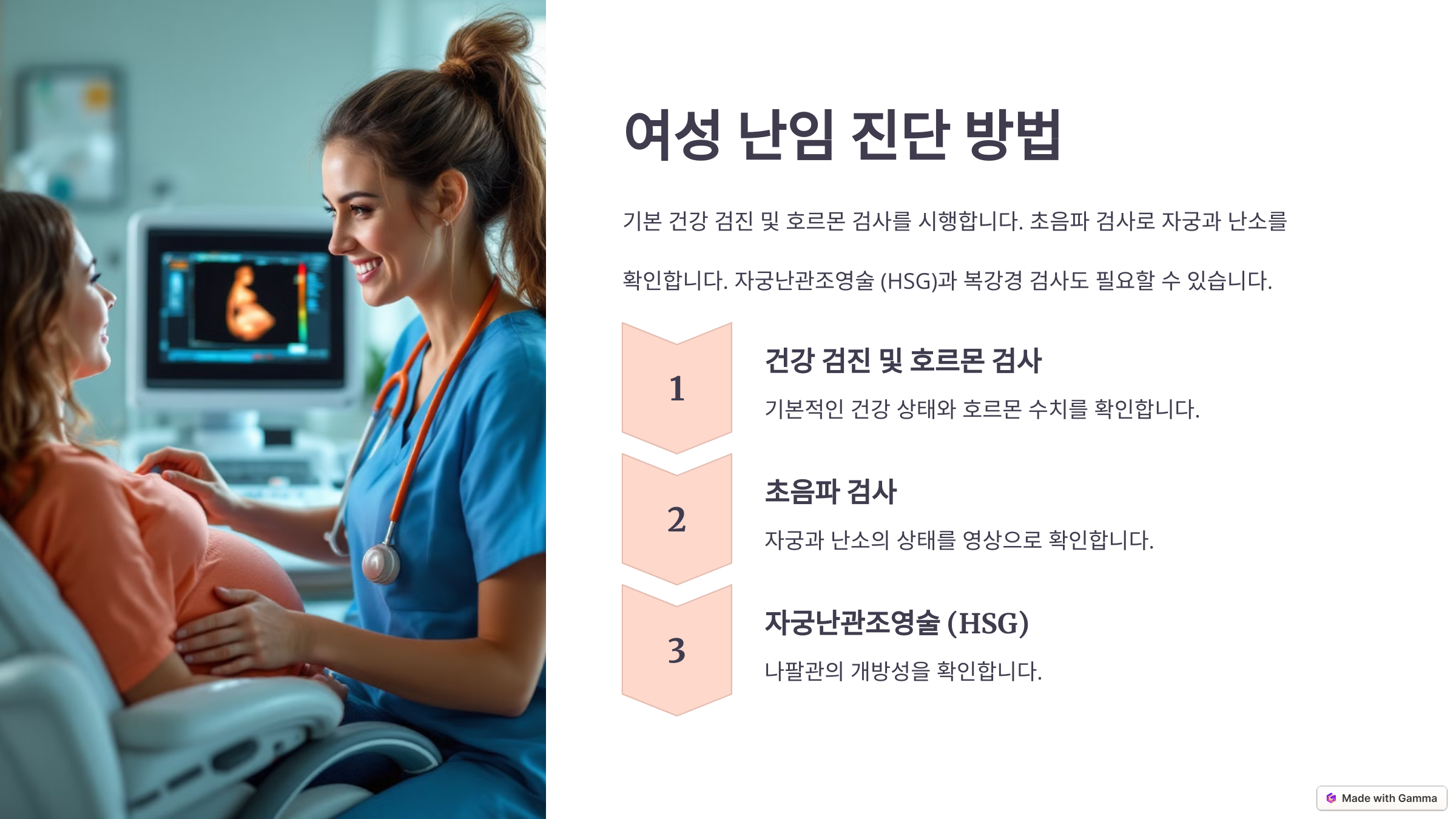 난임을 극복하기 위해서는 **정확한 원인을 파악하는 것이 가장 중요해요.** 난임 검사는 여성의 배란 상태, 호르몬 균형, 자궁과 난관의 건강 등을 확인하는 과정으로 이루어져요.