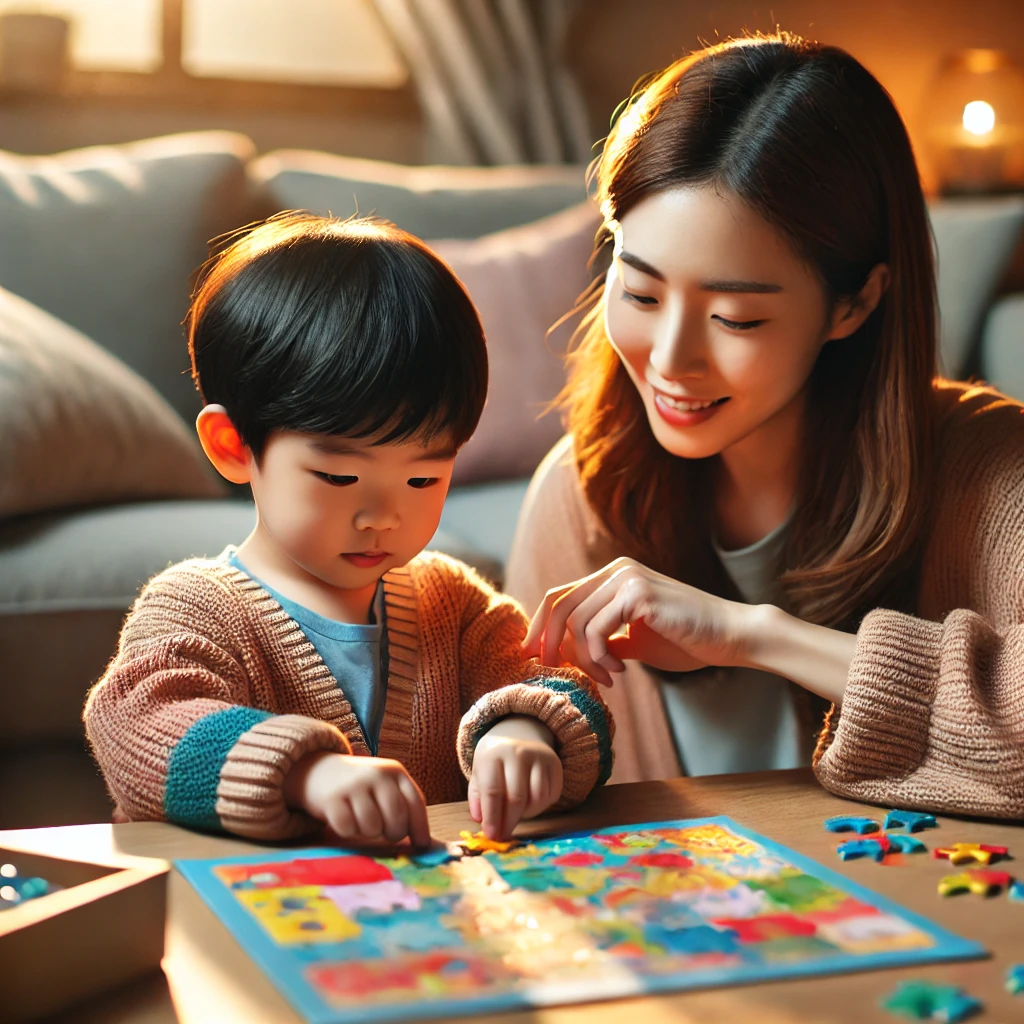 아이의 연령과 수준에 맞는 퍼즐을 선택해 함께 맞춰 보세요. 퍼즐은 아이의 문제 해결 능력과 집중력을 향상시키는 좋은 도구입니다. 퍼즐을 완성한 후에는 결과물에 대해 대화하며 아이와 상호작용하는 시간을 가져보세요.